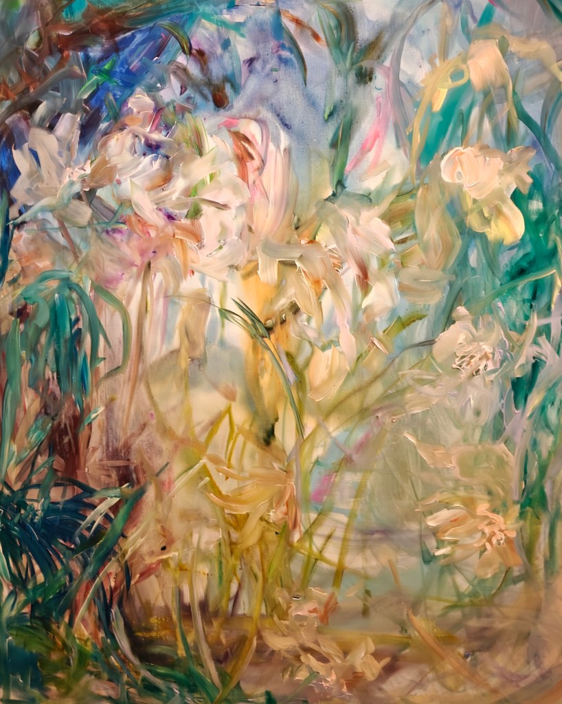 In my art, I find inspiration, especially in the aesthetic of past decades, focusing on the manor and garden milieus, as well as the spaces individuals create for themselves for everyday escapes. I aim to create connections between the past and present, as well as between dreams and reality. Alongside nature, women and the diverse roles of women play a central part in my art. In 2025, I have focused more on, for instance, abstraction, bodies, humour, and drawing inspiration from the color palette of the Baroque.